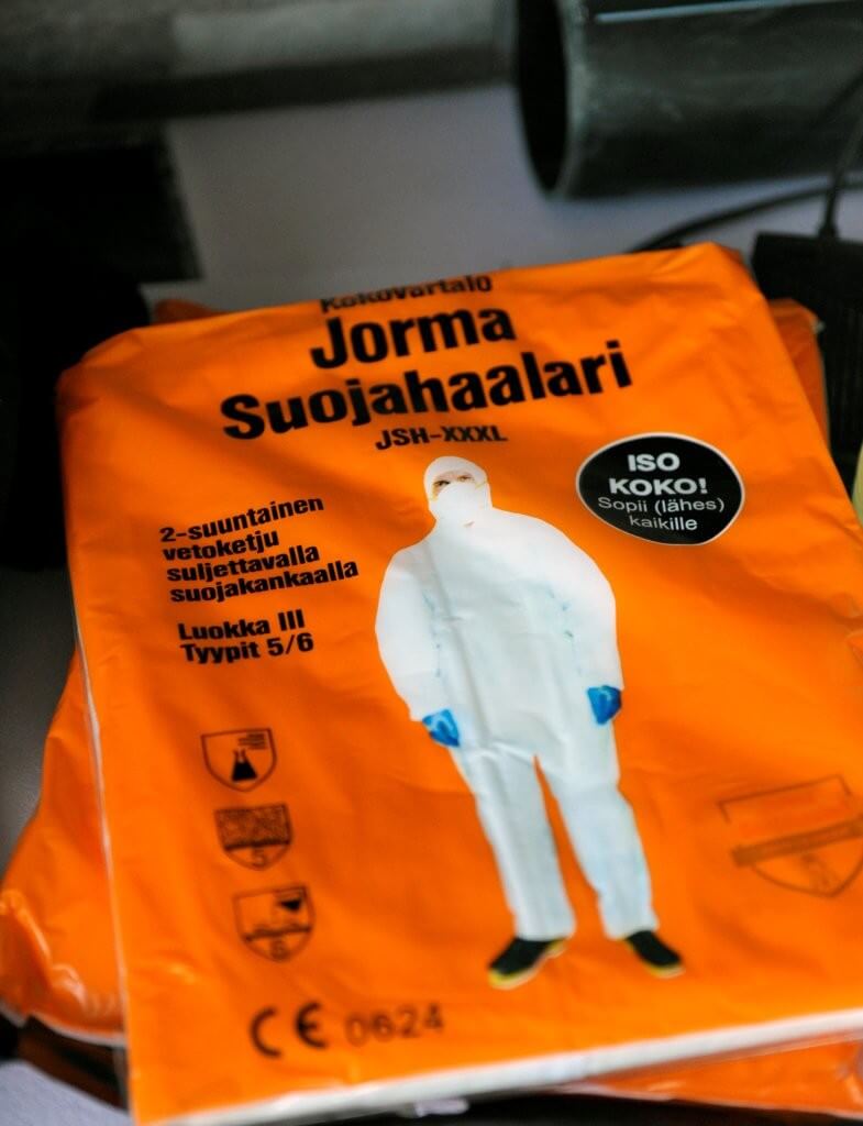 Henkilösuojainten käyttöä ja puhdistautumista on harjoiteltava koulutuksessa.