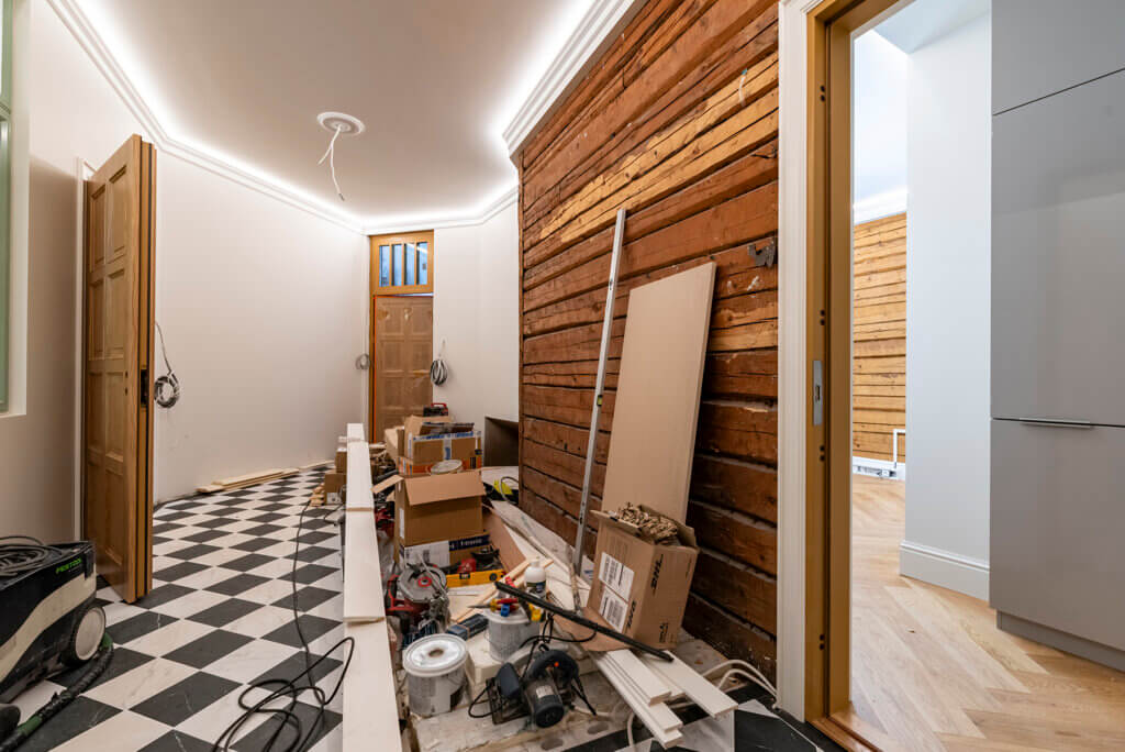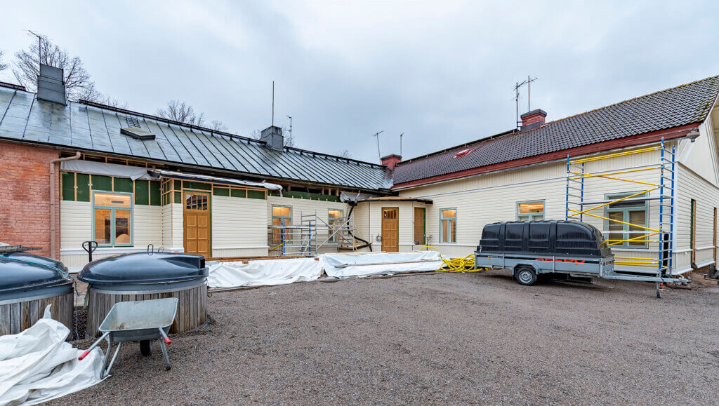 Remontti on alkanut kesällä 2024 ja paljon muutostöitä piti tehdä, ennen kuin on päästy tähän asti. Oikeastaan vain hirsi- ja tiiliseinät ovat alkuperäiset, ja kivijalka totta kai. Kaikki muu on tehty uusiksi. Kunnostusurakka on someajan projekti, ja uusimpia vaiheita esitellään Sugarfactory Apartmentsin kanavilla sosiaalisessa mediassa.
